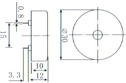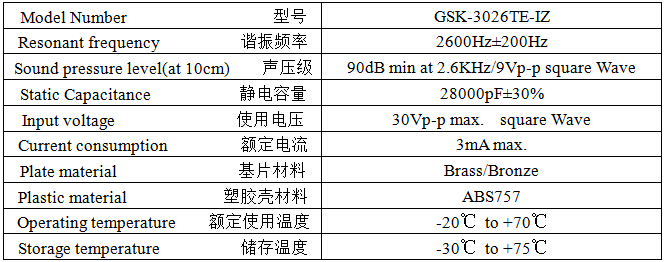Product Name: Passive Piezoceramic Buzzer 30mm 2.6KHz Pin-inserted